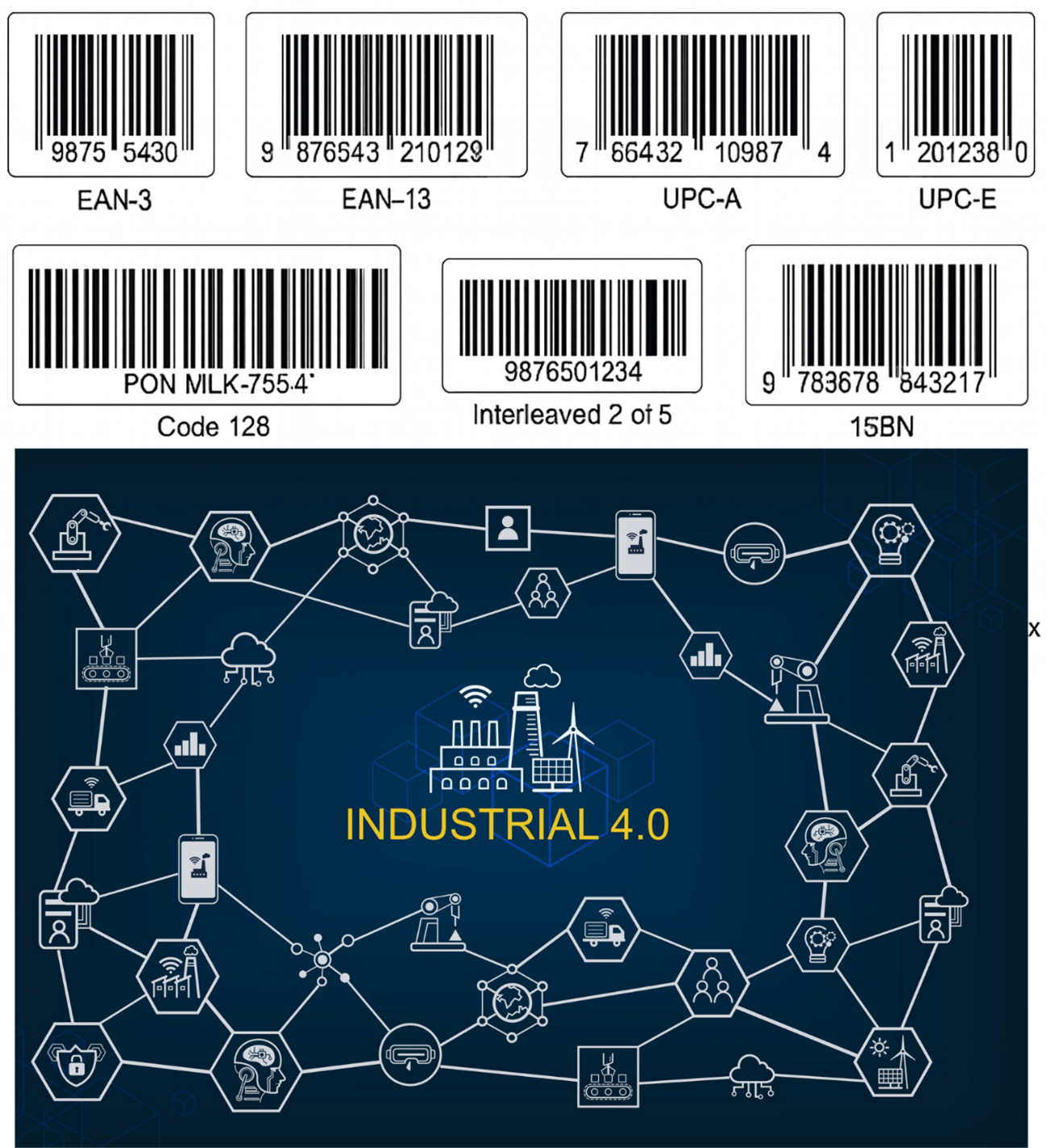 O código de barras é uma representação gráfica de dados que identifica produtos de forma única. Na Indústria 4.0, sua função se expande para:
